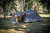 Stretched dome tents are perfect for individuals or small to medium sized groups. The weatherproof vestibule creates a perfect place for any storage that needs to stay dry. Fly: 68D 190T Polyester/3000mm, PU coating - Fully taped seams - 43" D x 73"W x 4' 6"H. Floor: 210D Oxford, 3000mm, Taped seams bathtub style. Doors: one exterior & one interior - Size 8 zippers. Includes tent pegs, guidelines, inside mesh pockets and carry bag. Graphite/Orange.