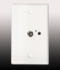 Twelve volt DC power supply for amplified antenna with flush wall mount plate. Inputs for TV antenna and cable with built-in selector switch. F-type connectors for 2 tv outputs. White.